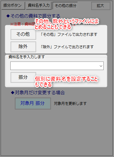 『その他』『除外』という名称のファイルにまとめて出力もできるので、