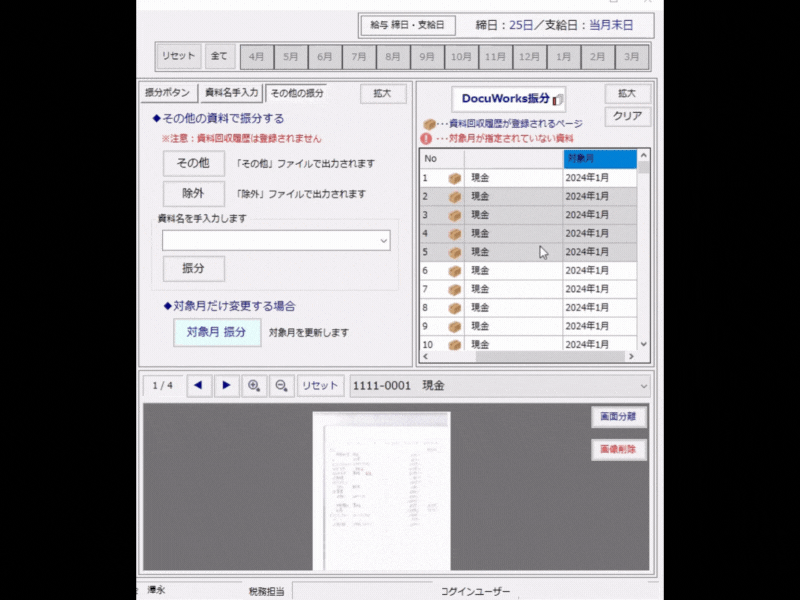 振り分けが終わると、処理した月度の資料の回収状況が更新される仕組みとなっています。
